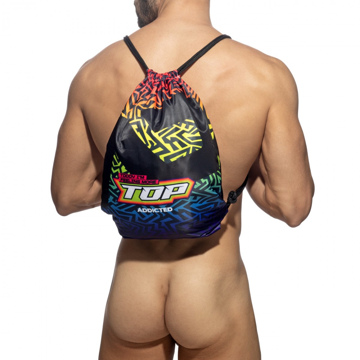 Uber-thicc drawstring bands on both sides: these create the top close-tie & are the shoulder straps at the same time.